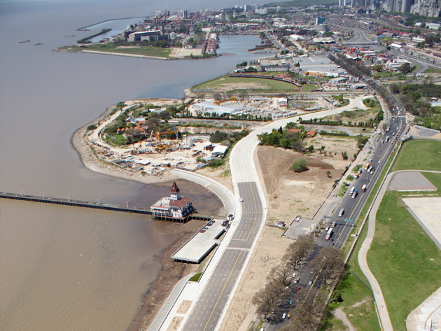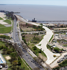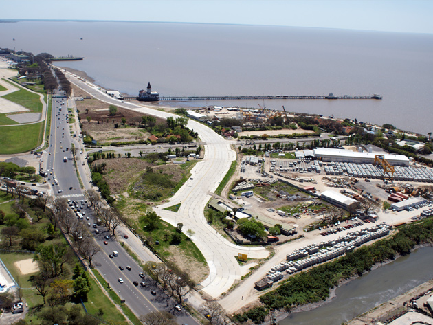 This job involved the construction of a new north promenade, locally called 'Costanera Norte', for the City of Buenos Aires, gaining an extra 260,000 m3 of land from the river. A parking lot was built on 116 piles over the river and a mixed fender system was deployed along 840 meters of coast using sheet piling and the CODE system.