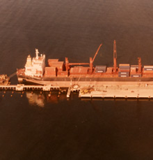 Every job carried out for this Principal has been a turnkey project. The basic plan consisted of building a 200m-long dock. Later on, the dock was expanded by 45m to make it suitable for Full Containers (this job was completed without affecting the operations of the original dock) and finally a 30 m-long berthing wharf was built. The work was completed with the construction of mooring towers, dolphins, light towers, rubber fenders, bollards, stairs, and every addition needed to operate the facility. Finally, the concrete slab and surface course were built, and rails were installed for Panamax cranes.