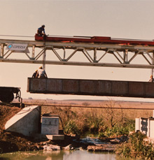 Renovation of 10 bridges on the General Urquiza Railway. The job consisted of rebuilding embankments, access roads and the bridges damaged by the 1982 floods. The superstructure was built with 20m-span, 50t prestressed and premolded beams and the foundations were built with large-diameter piles constructed on the site.